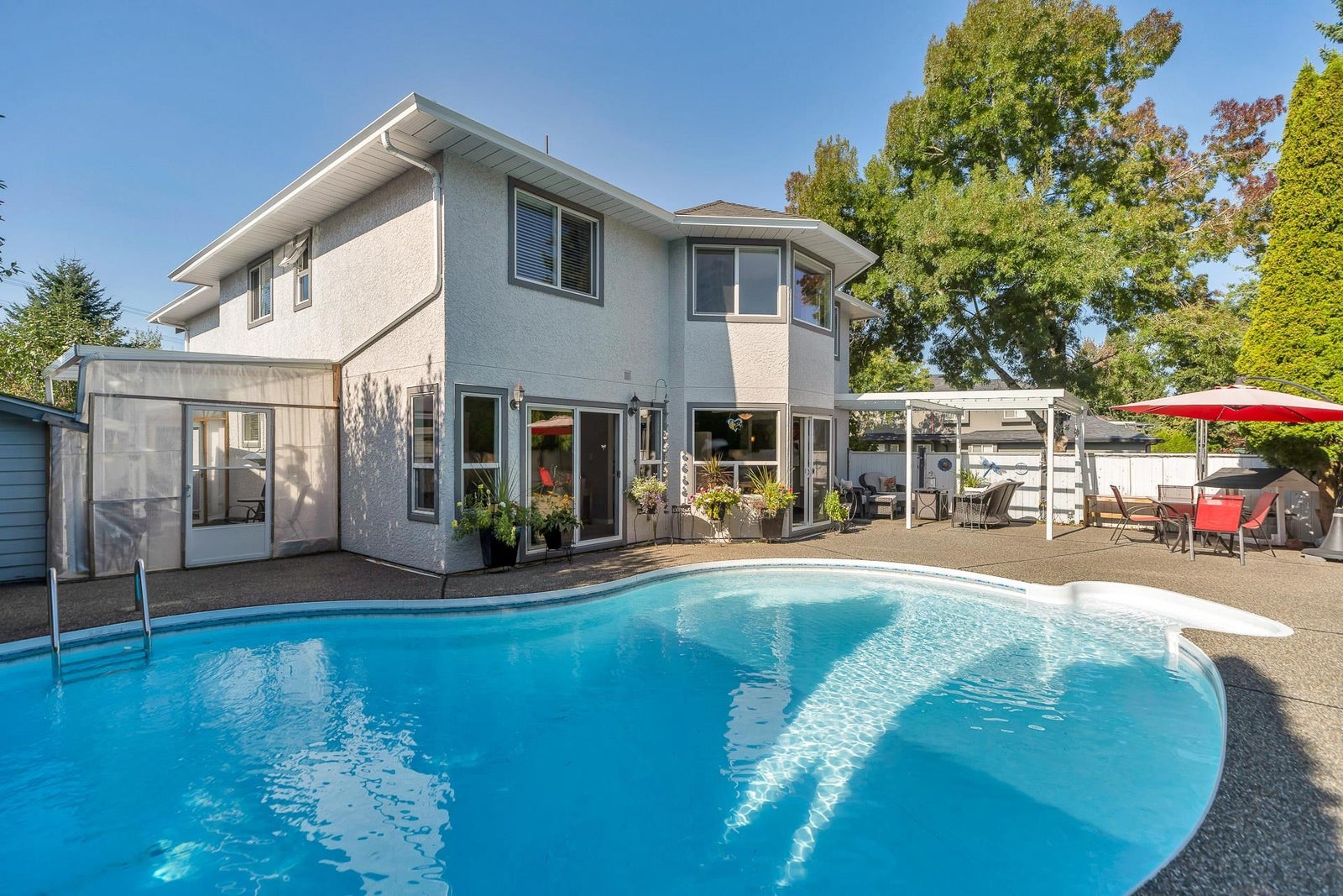 Beautifully updated 2,700 sq ft two-story home situated on a 7,100 sq ft corner lot in one of Cloverdale’s most sought-after locations. Step into the bright and inviting living room featuring hardwood floors, soaring ceilings, and a cozy gas fireplace. Renovated kitchen with tile flooring showcasing custom cabinetry, quartz countertops, designer lighting & a premium gas range stove. Sliding glass door opens to your private backyard oasis, complete with a serene outdoor seating area, a large pool, and mature hedging for ultimate privacy. Upstairs, you'll find four generously sized bedrooms plus a large games room that can easily serve as a fifth bedroom, home office, or media room. Primary Bedroom with w/i closet & beautiful 4 pc ensuite. A beautiful family home in a fantastic neighborhood!
